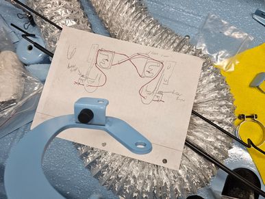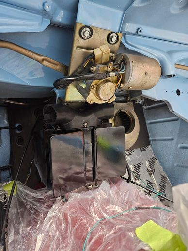 Started the install of the wiper arms. The red suitcase in the photos is actually my amp. The wiring will be hidden under the interior and the luggage straps will "hold" the system in place.