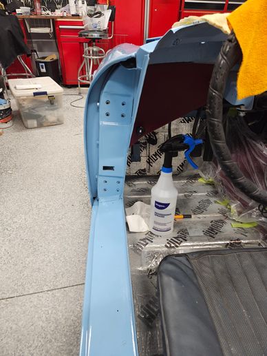 Jumping around just putting on what I have ready. I wanted to get the side trim on as access to their connecting washers and nuts is limited after the interior is installed.